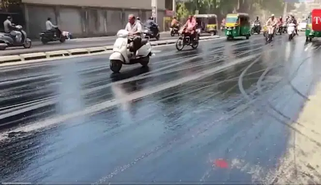 Gelombang panas yang melanda India membuat aspal yang berada di jalanan meleleh. Saking panasnya, kendaraan yang lewat pun sulit karena aspal mencair, dikutip dari laman Times if India.