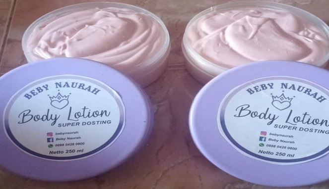 Pertama, produk Bebby Naurah Body Lation Dosting. Kedua, Bebby Naurah Body Lation Super Dosting.