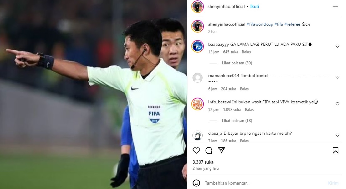 Zonafaktualnews.com – Akun Instagram Wasit asal China, Shen Yinhao, @shenyinhao.official ramai diserbu netizen.