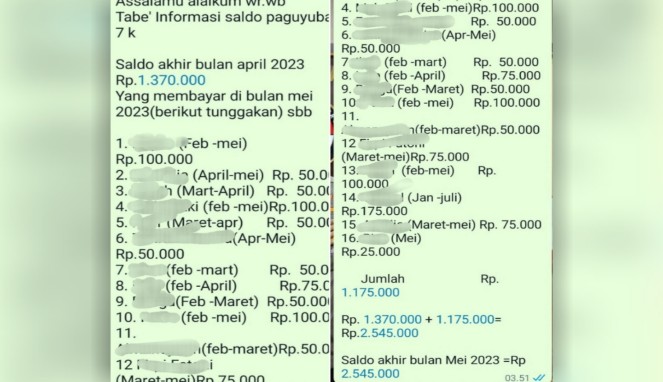 Sumbangan tersebut bertarif. Berdasarkan data yang diperoleh, saldo akhir bulan April 2023 tercatat sebesar Rp 1 juta lebih.