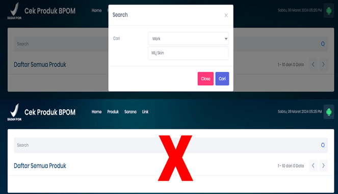 Berdasarkan hasil penelusuran dan pengecekan di BPOM, Sabtu (9/3/2024), sejumlah produk MLj Skin tidak terdaftar.