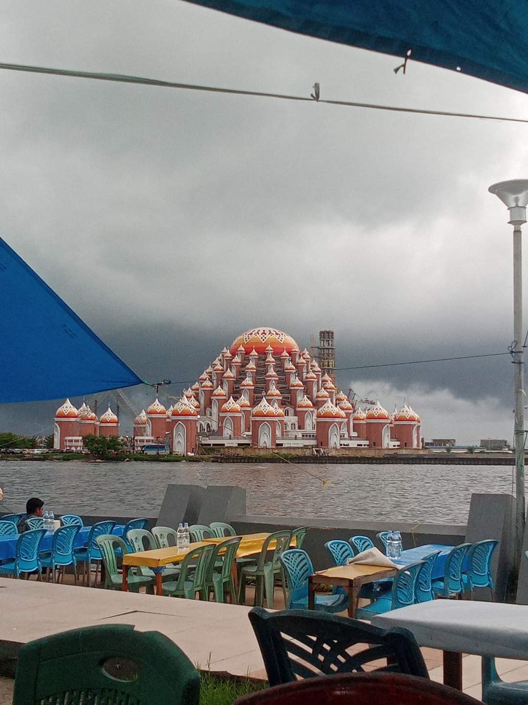 “Mungkin karena pemandangan ini mi akhirnya mahal sekali itu makanan tempat ku makan di pantai Losari ” tulisnya